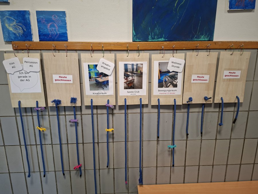 Die Zuordnung zu den einzelnen Angeboten oder zu den Lernbüros geschieht klassenübergreifend, indem die Kinder mit dem bereits bekannten „Klammersystem“ aus der OGS am Nachmittag entscheiden, was sie in der LUNA-Zeit machen werden.