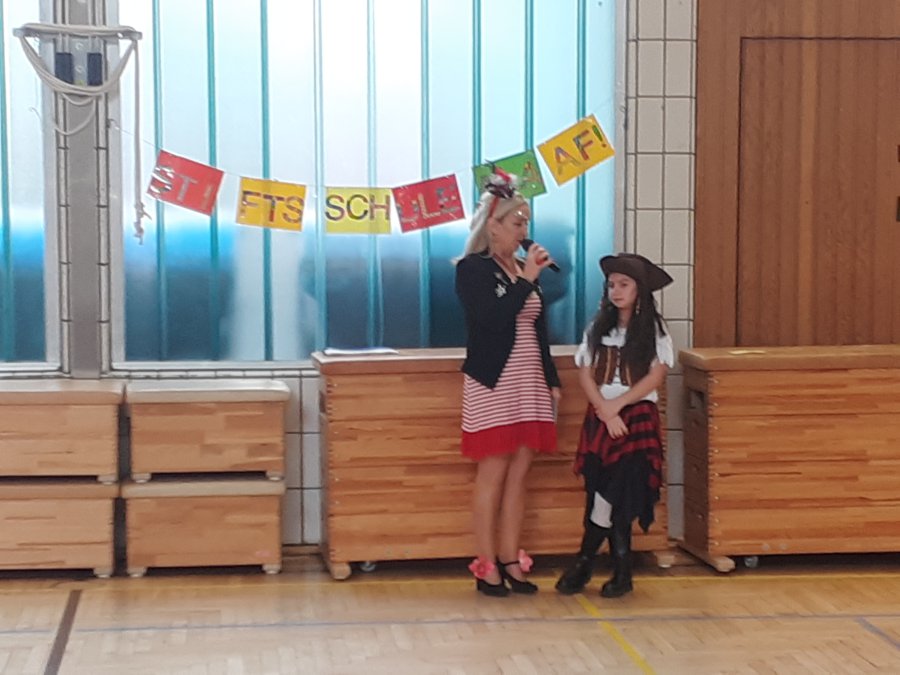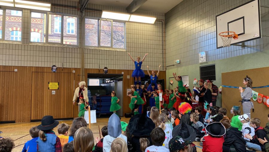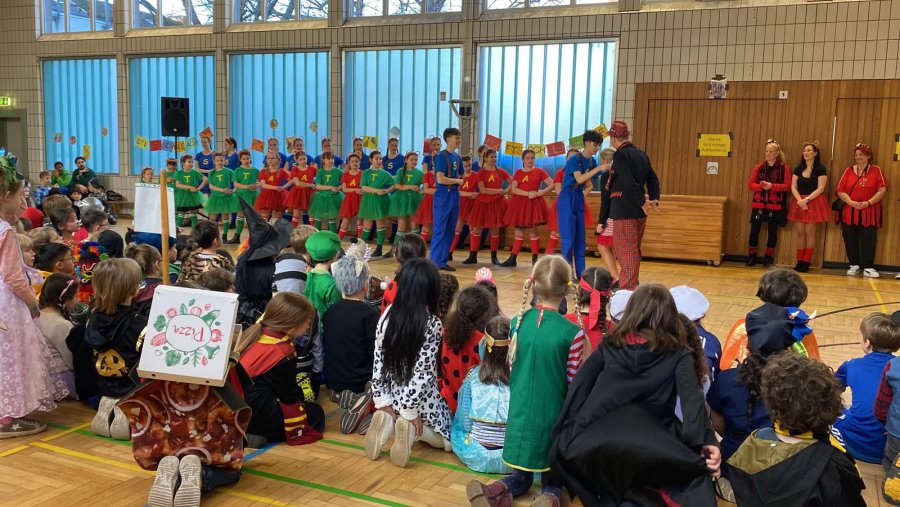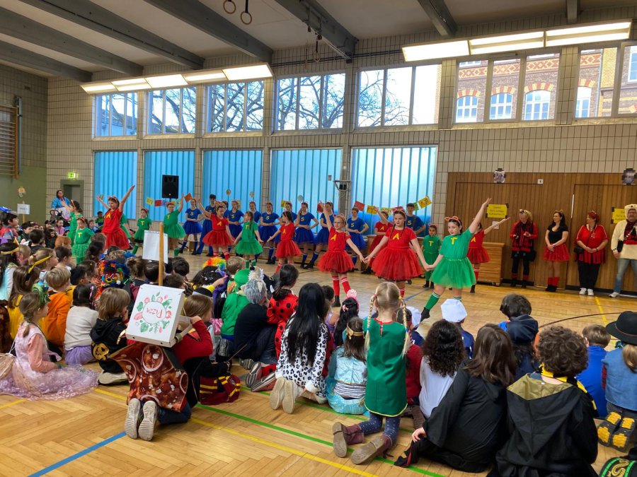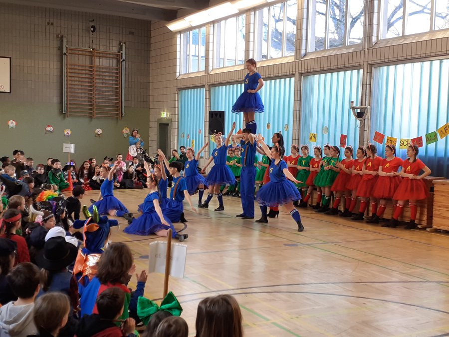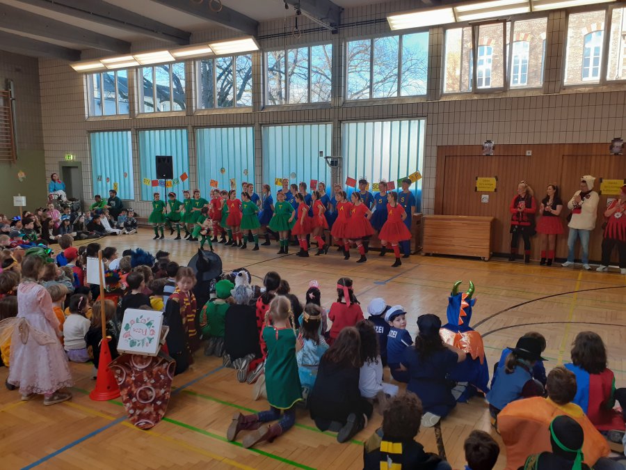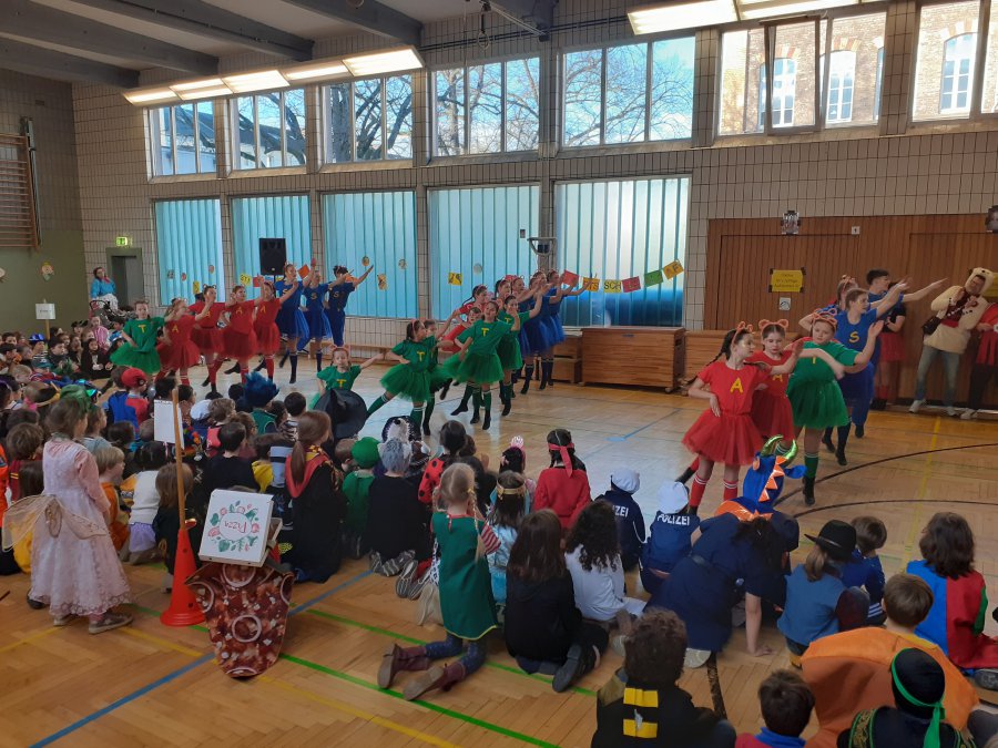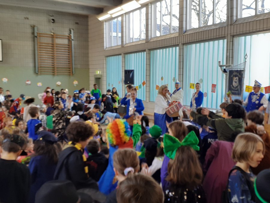Auch in diesem Jahr wurde an der Stiftsschule wieder ausgiebig Karneval gefeiert. An Weiberfastnacht versammelten sich zu einer eigenen kleinen Karnevalssitzung alle Kinder und alle Lehrkräfte in der Turnhalle. Es gab ein selbst erstelltes buntes Programm aus kleinen Tänzen und Liedern sowie ein lustiges Theaterstück und auch einen Sketch der Lehrerinnen und Lehrer. Außerdem hatte man externen Besuch eingeladen. So freute sich die Schulgemeinschaft schon am frühen Morgen um 9.00 Uhr über die tänzerische Darbietung der KG Teddybären e.V., die mit vielen akrobatischen Einlagen die Kinder ins Staunen versetzten. Zum Abschluss des Vormittags empfing man dann noch die Kessenixe Shara I. mit Ihrem Gefolge der KG Weiß-Blau Bonn von 1979 e.V. Kessenich. Natürlich hatte Shara auch reichlich Kamelle mitgebracht.