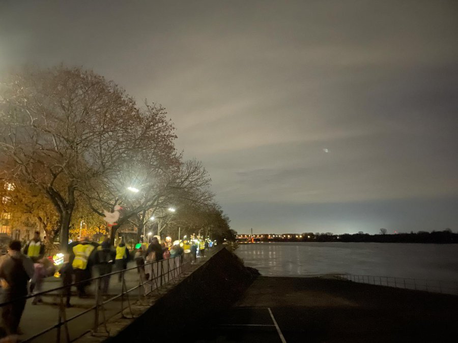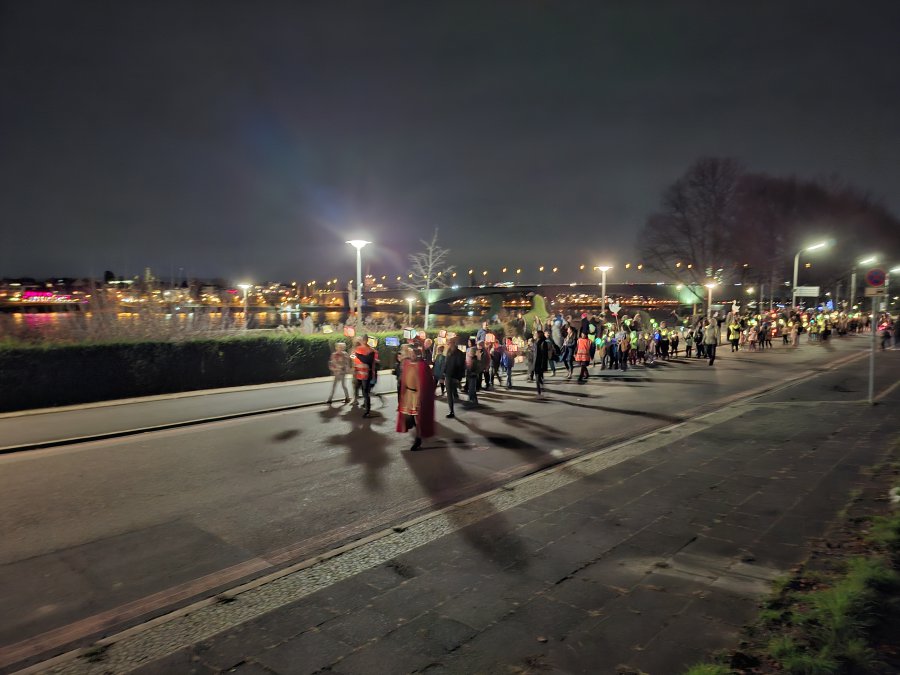 Dann sind wir am Rhein lang gegangen und haben Martinslieder gesungen.