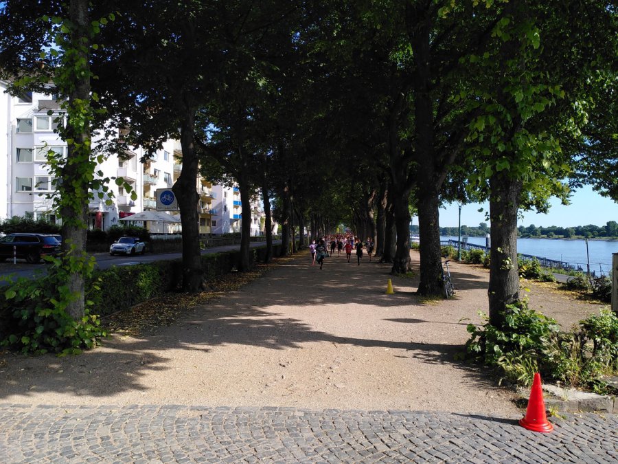 Zunächst waren die Schülerinnen und Schüler der ersten und dritten Klassen auf der Laufstecke am Rhein. Einige Kinder wärmten sich mit Liegestützen und Luftsprüngen auf, während die als Streckenposten eingesetzten Eltern den Weg markierten: Von der Einmündung Theaterstraße führte die Strecke in Richtung Kennedybrücke und zurück. Nach dem Startsignal durch Konrektor Stefan Laßlop setzen sich die Kinder in Trab – jedes Kind im eigenen Tempo, in kleinen Gruppen oder als ruhig dahinlaufende Einzelkämpferinnen und Einzelkämpfer. Nach 60 Minuten liefen alle voll Stolz auf ihre erreichte Rundenzahl ins Ziel. Es folgte der Lauf der zweiten und vierten Klassen, die ebenfalls durch große Ausdauer und Lauffreude glänzten.