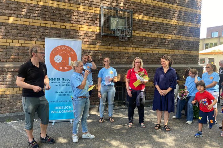 Verabschieden musste sich die Stiftsschule von Vera Heyes Johannsen, die über viele Jahre die Schulpflegschaftsvorsitzende unserer Schule gewesen ist und nun mit Ihrer Tochter gemeinsam an die weiterführende Schule wechselt. Ebenso wurden auch Katja Kruschweski und Thomas Breidenbach verabschiedet, die über viele Jahre den Förderverein der Schule führten und unterstützten. Wir bedanken uns noch einmal rechtherzlich bei den Dreien für die vielen Mühen und das große Engagement an unserer Schule!