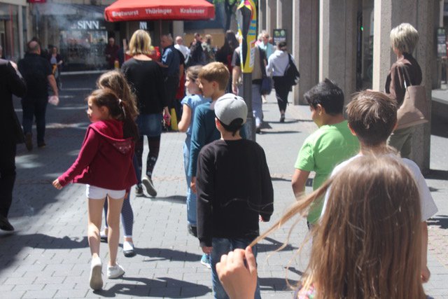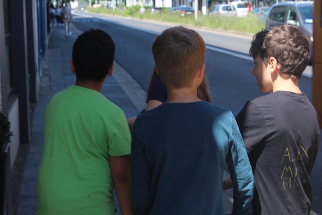 nos fueron preparando para la solemne entrega. También nos enteramos de que Beethoven había vivido 22 años en Bonn. ¡Nos ha dejado nada menos que nueve sinfonías! ¡La espera hasta la entrega puso a prueba nuestra paciencia ya que las escuelas fueron llamadas por orden alfabético! Representando a nuestra esculea, diez niños de la 3a recibieron orgullos y plenos de alegría “nuestro Beethoven” y lo llevaron con sumo cuidado al colegio. Allí se encuentra ahora el hijo más famoso de la ciudad, naturalmente en la sala de música. ¿Y hacia dónde dirige su mirada? Hacia la “Beethovenhalle”, por supuesto.