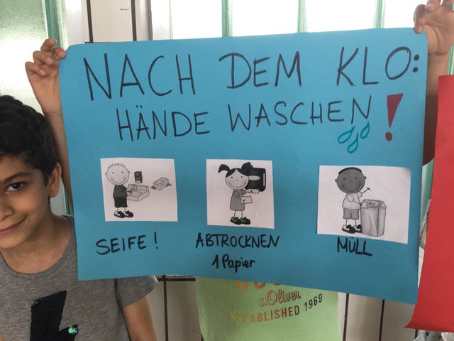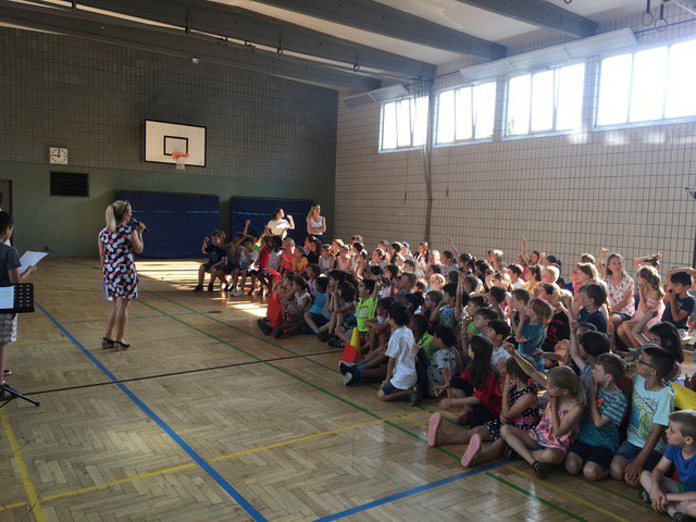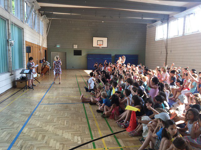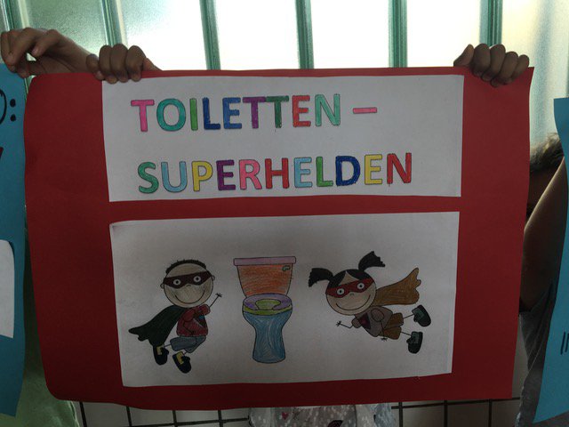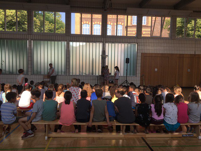 En junio de 2019 se reunieron por primera vez todos los niños y maestros de la Stiftsschule en el gimnasio del colegio para exponer temas interesantes para ellos, pero también para presentar poemas o chistes. Antes se habían reunido los delegados de las clases con la dirección del colegio y habían expuesto los temas tratados en los consejos de clase, los cuales tienen lugar regularmente. Se presentaron, por ejemplo, “sketchs” cortos sobre las reglas escolares que se habían elaborado antes para recordárselas a todos los niños. ¿Cómo he de comportarme en la escuela? Se recordó igualmente que la regla “SDD”, es decir, “en silencio, despacio y por la derecha” a ayuda a bajar por la escalera. Los “superhéroes de los baños” explicaron a los niños de una manera muy clara la forma de comportarse en los lavabos y la “regla ¡alto!” es útil si hay conflictos o problemas. Además, fue presentado a los niños el colegio “Max Uhle”, nuestra escuela asociada en Arequipa, Perú. Para terminar, los alumnos del 4.° curso cantaron la canción „Ein Hoch auf uns! (Un brindis por nosotros)“