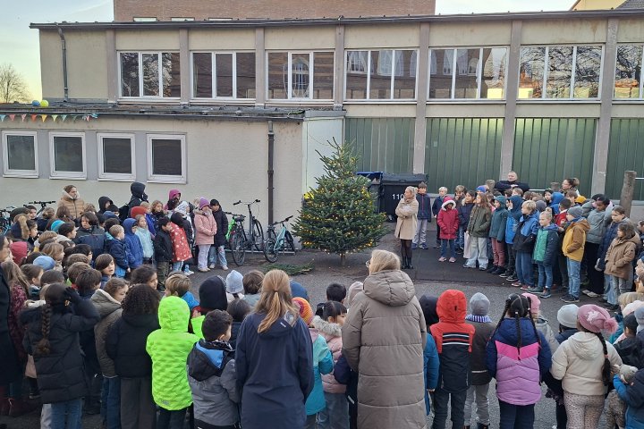 Seit dem ersten Dezember sind an der Stiftsschule alle Kinder und alle Erwachsenen in Weihnachtsstimmung. Die Schule ist schön geschmückt und ein großer beleuchteter Weihnachtsbaum steht auf dem Schulhof. Jeden Montagmorgen trifft sich die Schulgemeinschaft am Weihnachtsbaum um Weihnachtslieder zu singen. Am letzten Schultag sind dann auch alle Eltern eingeladen, um mitzusingen und um verschiedenen weihnachtlichen Darbietungen von den Kindern beizuwohnen.