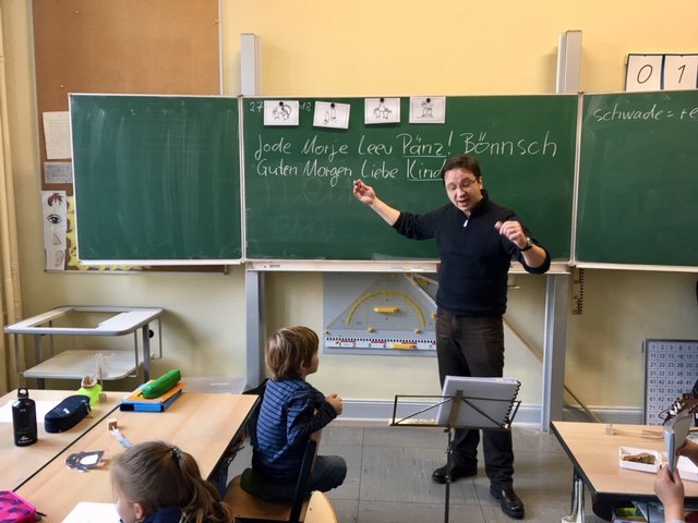 El año que viene algunas clases de nuestro colegio participarán de nuevo en el evento „Loss mer singe füe Pänz“ . Joe Tillmann nos visitó para enseñarnos un poco de „Bönnsch“ e darnos una introducción en los fundamentos de dicho dialecto. Además cantamos algunas canciones en “Bönnsch” . La canción “Pänz, Pänz,Pänz” queremos interpretarla el 26 de febrero de 2019 a las 16.00 h en el pabellón de la Plaza de la Catedral.
