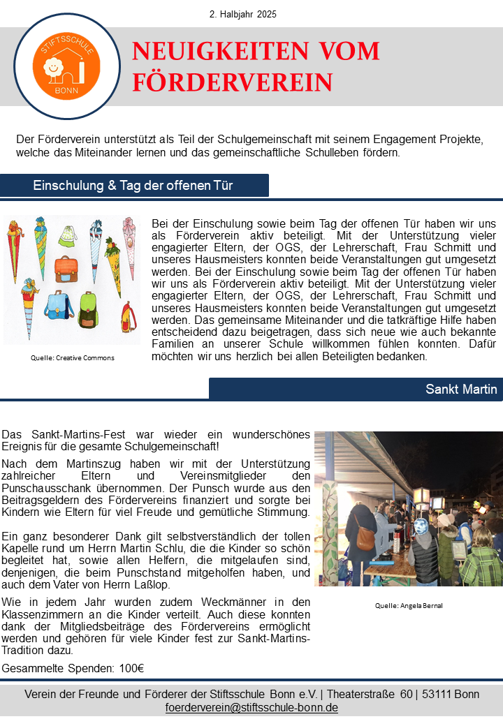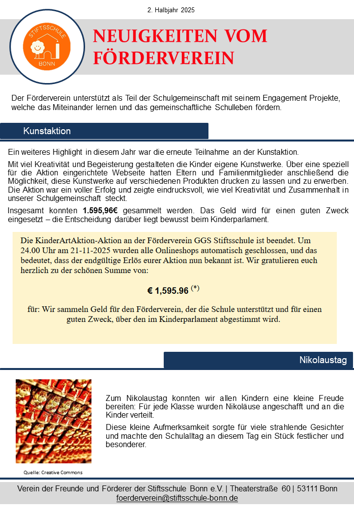 Die Stiftsschule ist eine der ältesten Schulen Bonns. Viele Generationen von Kindern sind “in der Kuhl” zur Schule gegangen und fühlen sich mit ihr eng verbunden. Das Miteinander lernen und das gemeinschaftliche Schulleben fördern viele Aktivitäten. Als Teil der Schulgemeinschaft Der unterstützt der Förderverein mit seinem Engagement Projekte, Initiativen und Anschaffungen an der Stiftsschule.