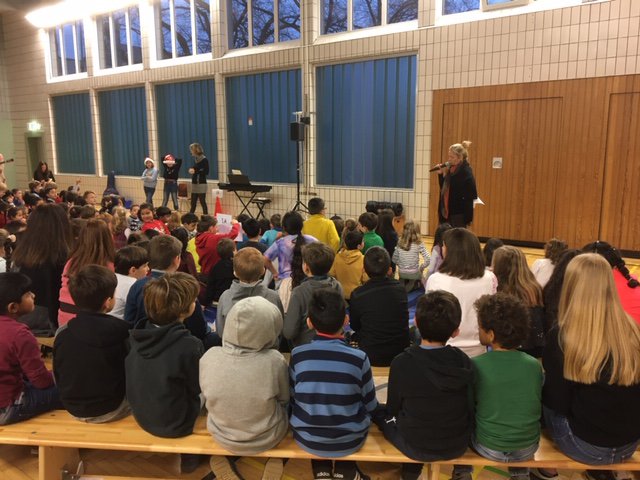 Am letzten Schultag vor den Weihnachtsferien fand unsere 2. Schülerversammlung in der Turnhalle der Stiftsschule statt. Alle Klssen führten weihnachtliche Beiträge vor und die Kinder der 4b erinnerten uns noch einmal an die “Toiletten Super-Helden”!