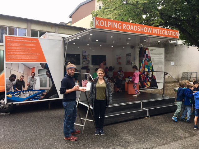 El martes 12 y el viernes 22 de junio de 2018 nos visitó el Infomobil del „Kolping Roadshow“. Los niños pudieron acercarse de manera lúdica al tema de los refugiados observando interesadamente las cosas que llevaban consigo algunos de ellos durante su itinerario. ,