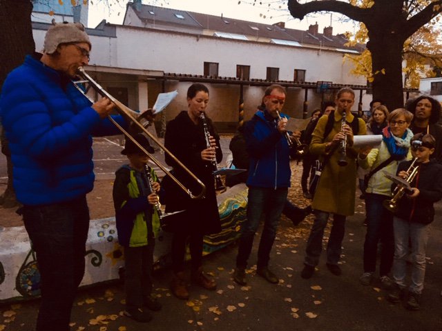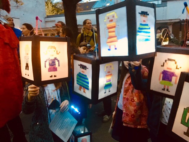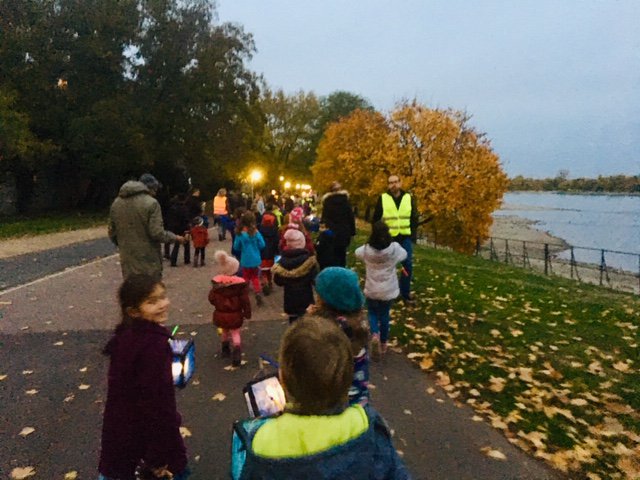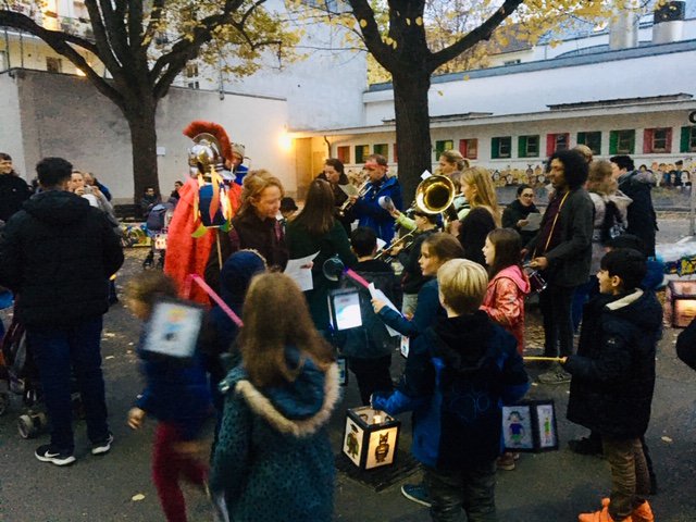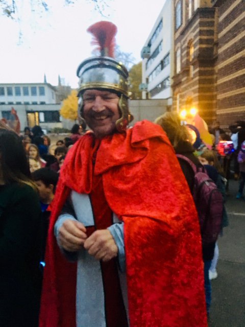 Este año un San Martín „verdadero“ acompañó nuestro desfile y una banda formada por padres de familia de la escuela se encargó de la música. Además hubo un pequeño acto de las clases de 4.° y, naturalmente, como siempre, “Weckmänner” de la asociación de apoyo al colegio para todos los niños.